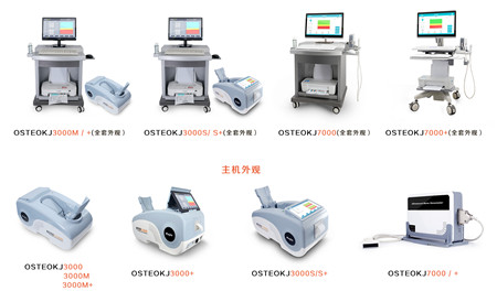南京澳思泰生物科技有限公司生產的超聲跟骨骨密度儀型號目前有六種,分別是:OSTEOKJ3000、OSTEOKJ3000+、OSTEOKJ3000M、OSTEOKJ3000M+、OSTEOKJ3000S、OSTEOKJ3000S+。這六種型號的跟骨骨密度儀都是利用超聲原理,外圍輪廓也基本相似,僅僅在某些功能上存在著些許差異,有些型號的跟骨骨密度儀也僅僅是功能上有些差異,外觀也非常相似,下面我用圖表給大家展示不同型號跟骨骨密度儀之間的區別。