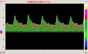 經(jīng)顱多普勒頸內(nèi)動(dòng)脈頻譜圖                        經(jīng)顱多普勒頸外動(dòng)脈頻譜圖